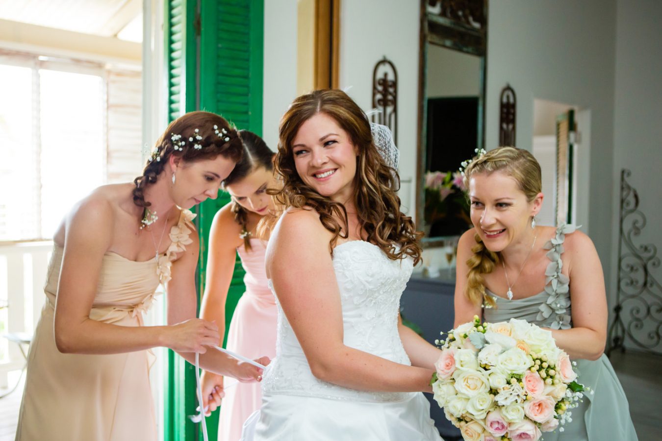 Beautiful Holly and her attentively awesome bridesmaids got ready at The Green Door with hair and make up by Suzi Dent. Meanwhile, Pete and the groomsmen invoked their inner boy band moves at the River Inn and on the footbridge on the way to the ceremony.