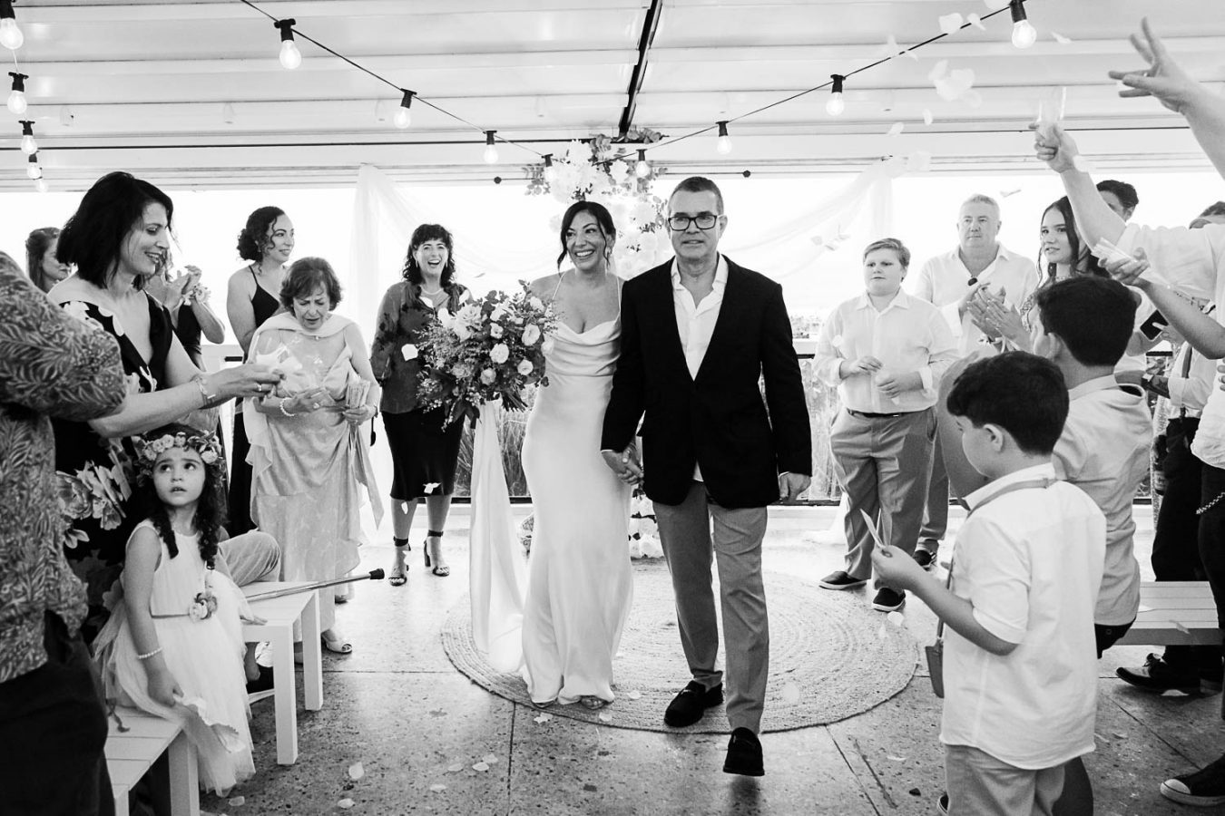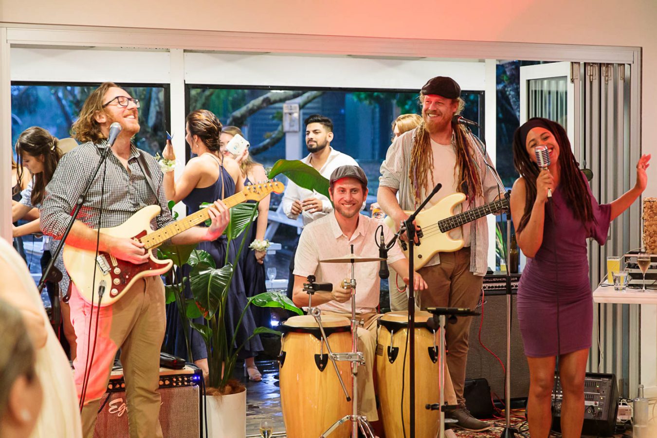 The larger congregation met at Beach Restaurant, where Skai Daly lead a heartfelt and ceremony. A few swift moments under the umbrella and this gorgeous couple just couldn’t wait to share a drink with their guests and join the party on the dance foor. Miss Renee Simone set the dance floor on fire! With her toe-tapping band from Byron Bay Experience.