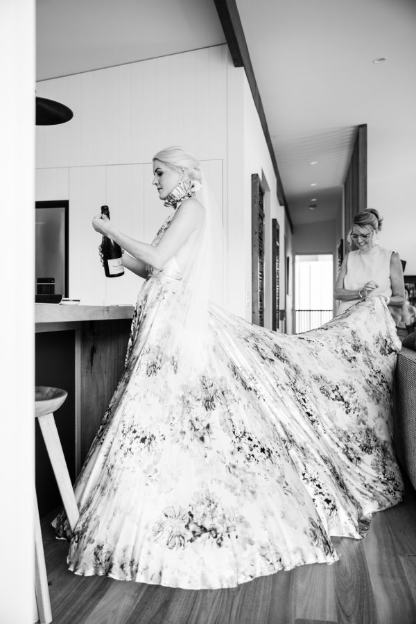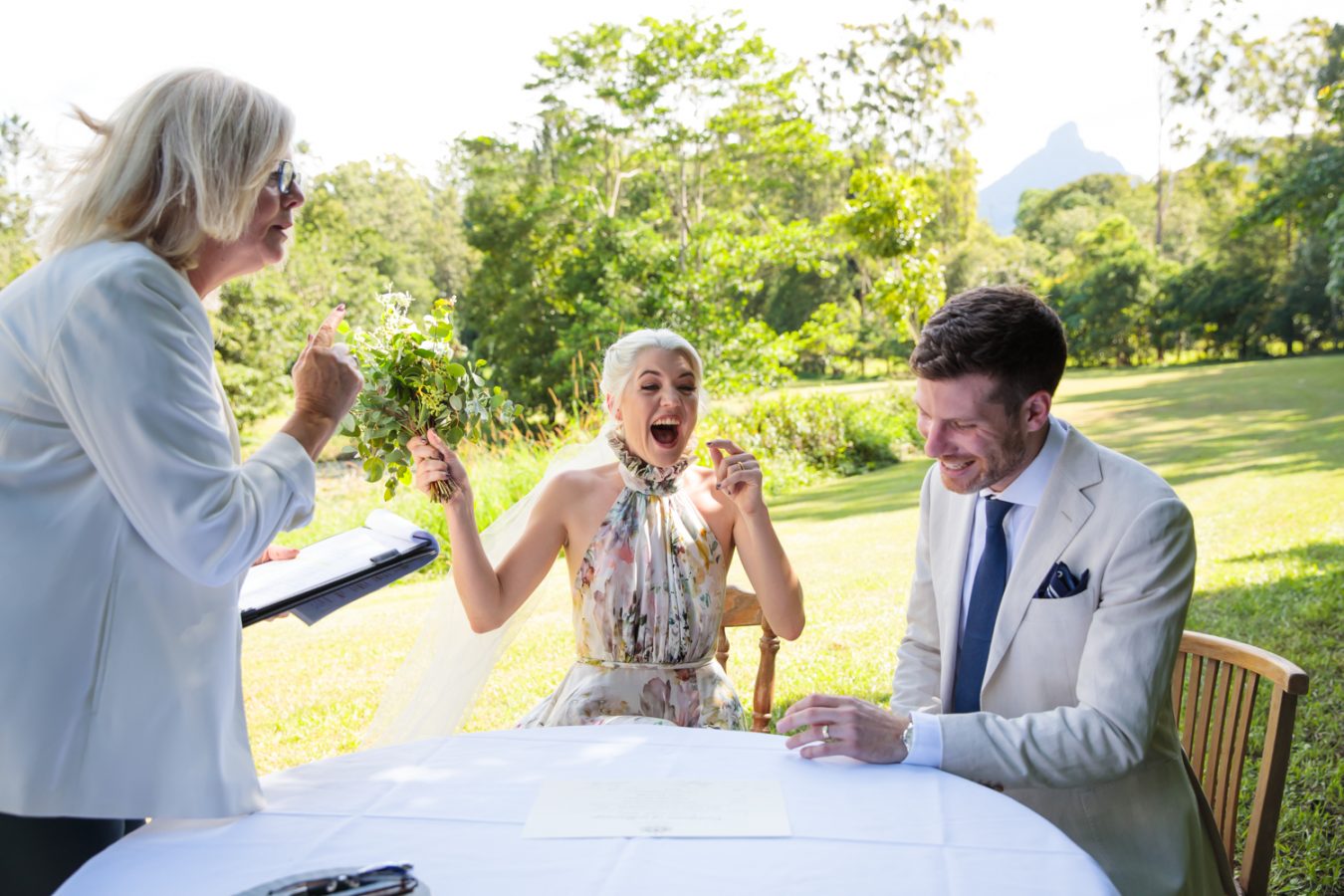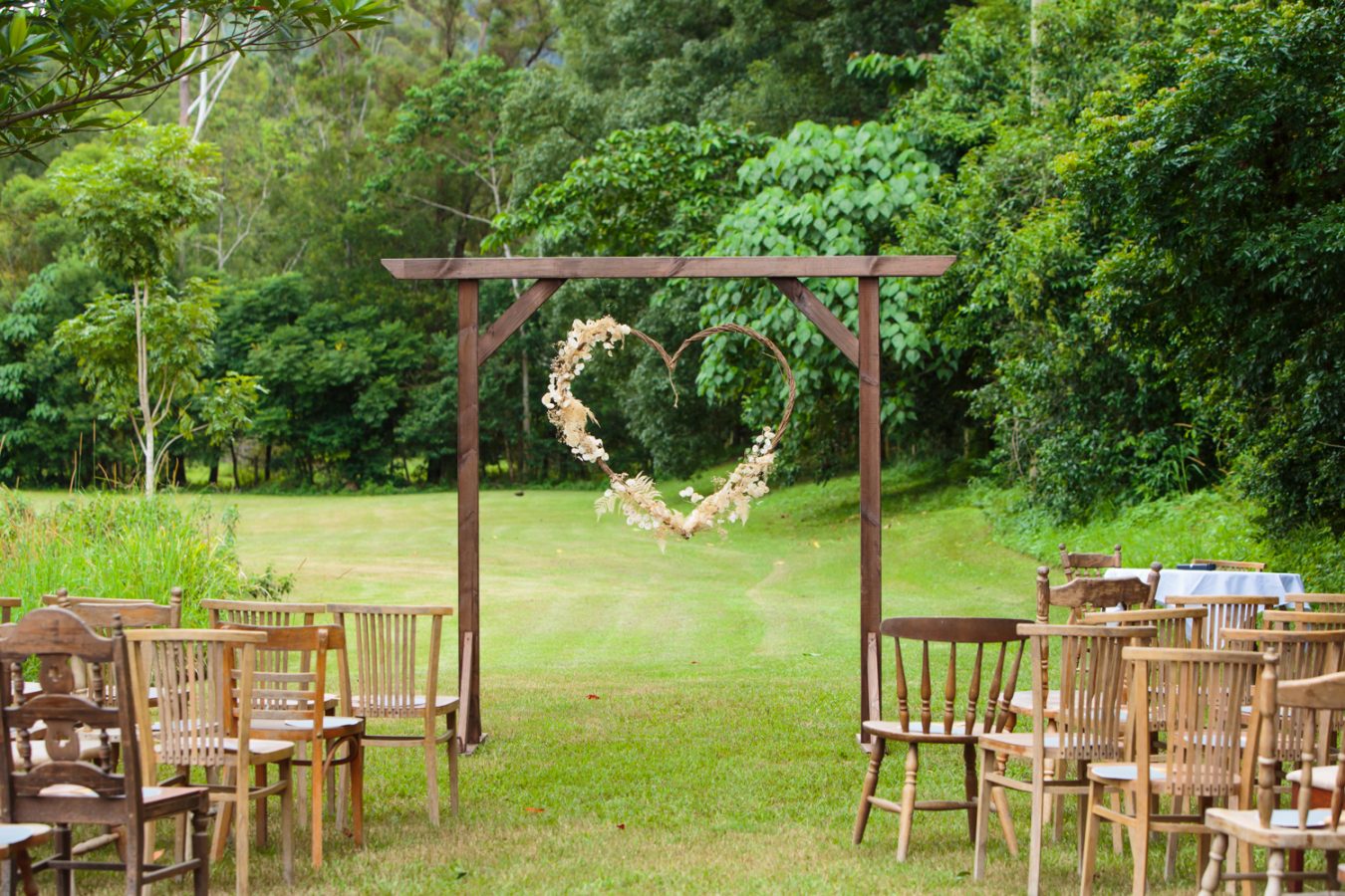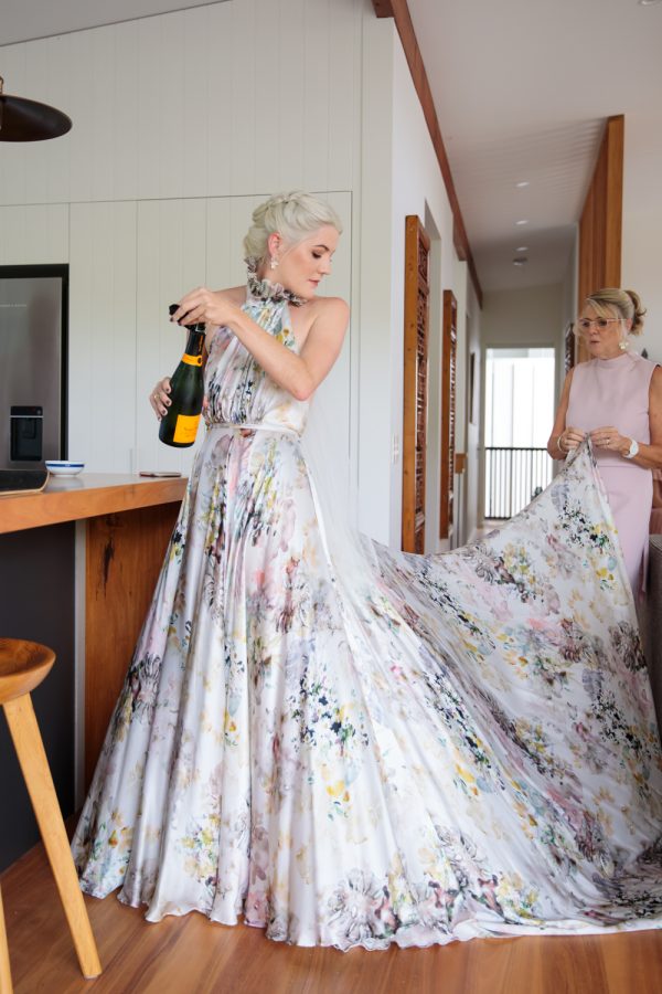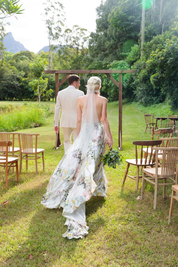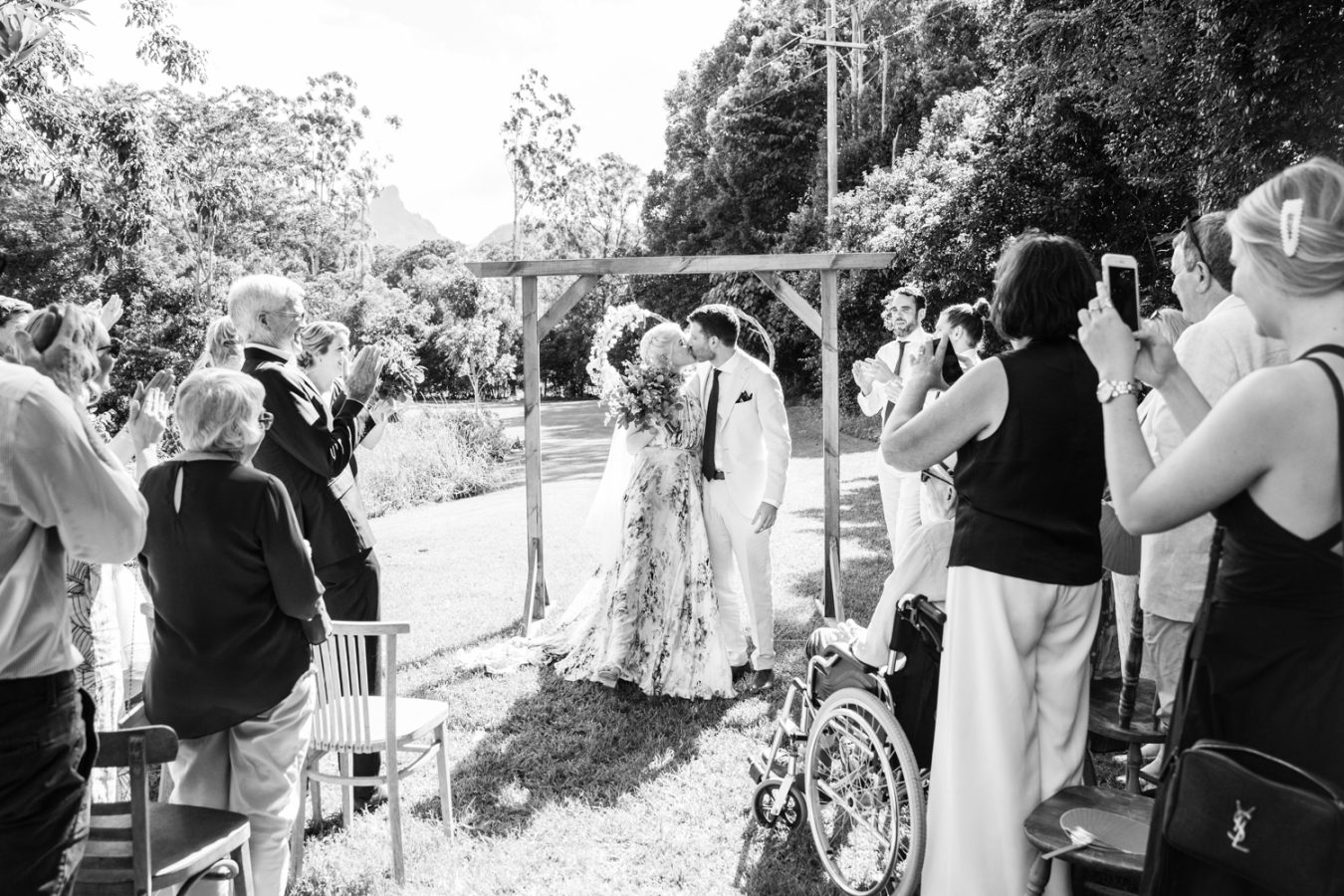 Loved ones ventured from near and far to gather in the gardens of Mavis’s Kitchen. The pair made their vows under the loving guidance of Liv’s aunty, in a perfectly framed setting at the foot of Woolumbin. In a special surprise, the mothers arranged a traditional smoking ceremony which honoured their formal union and guests were invited to join in the blessing.