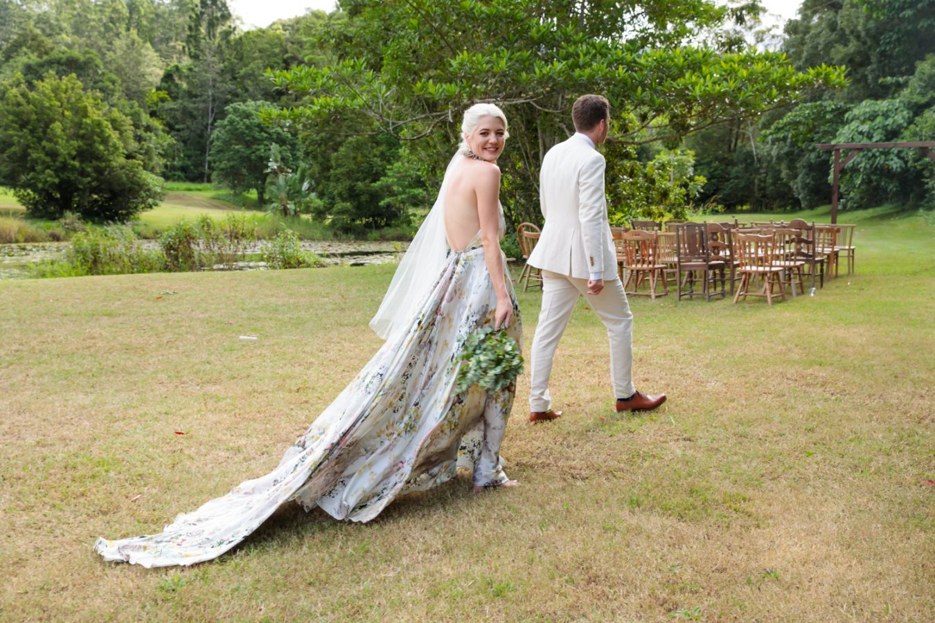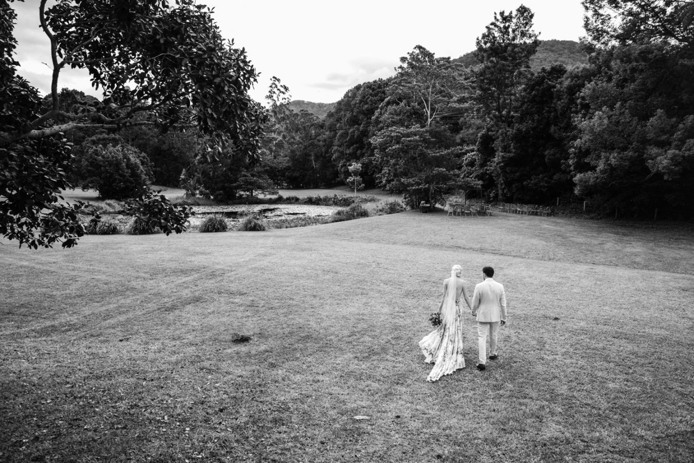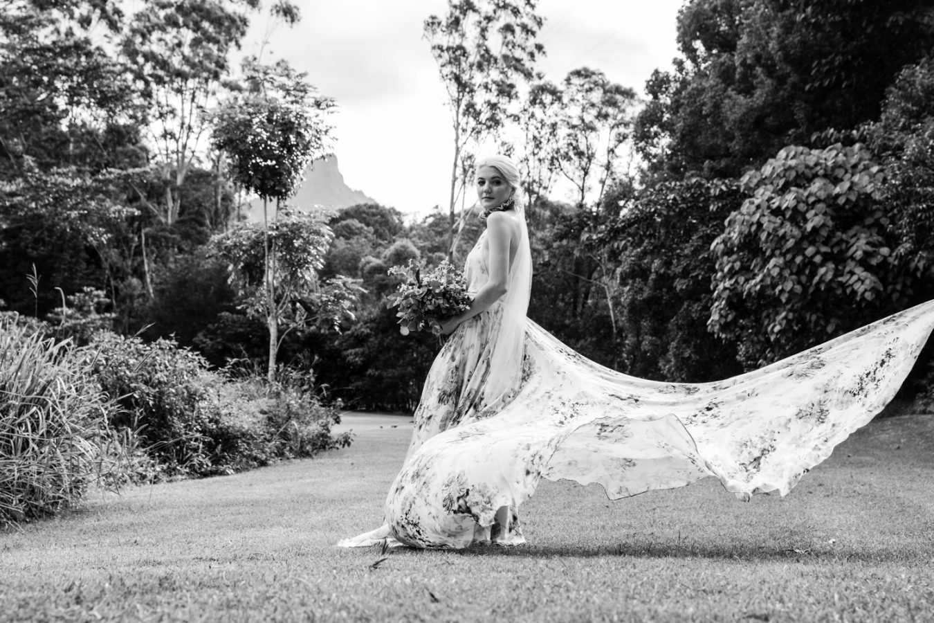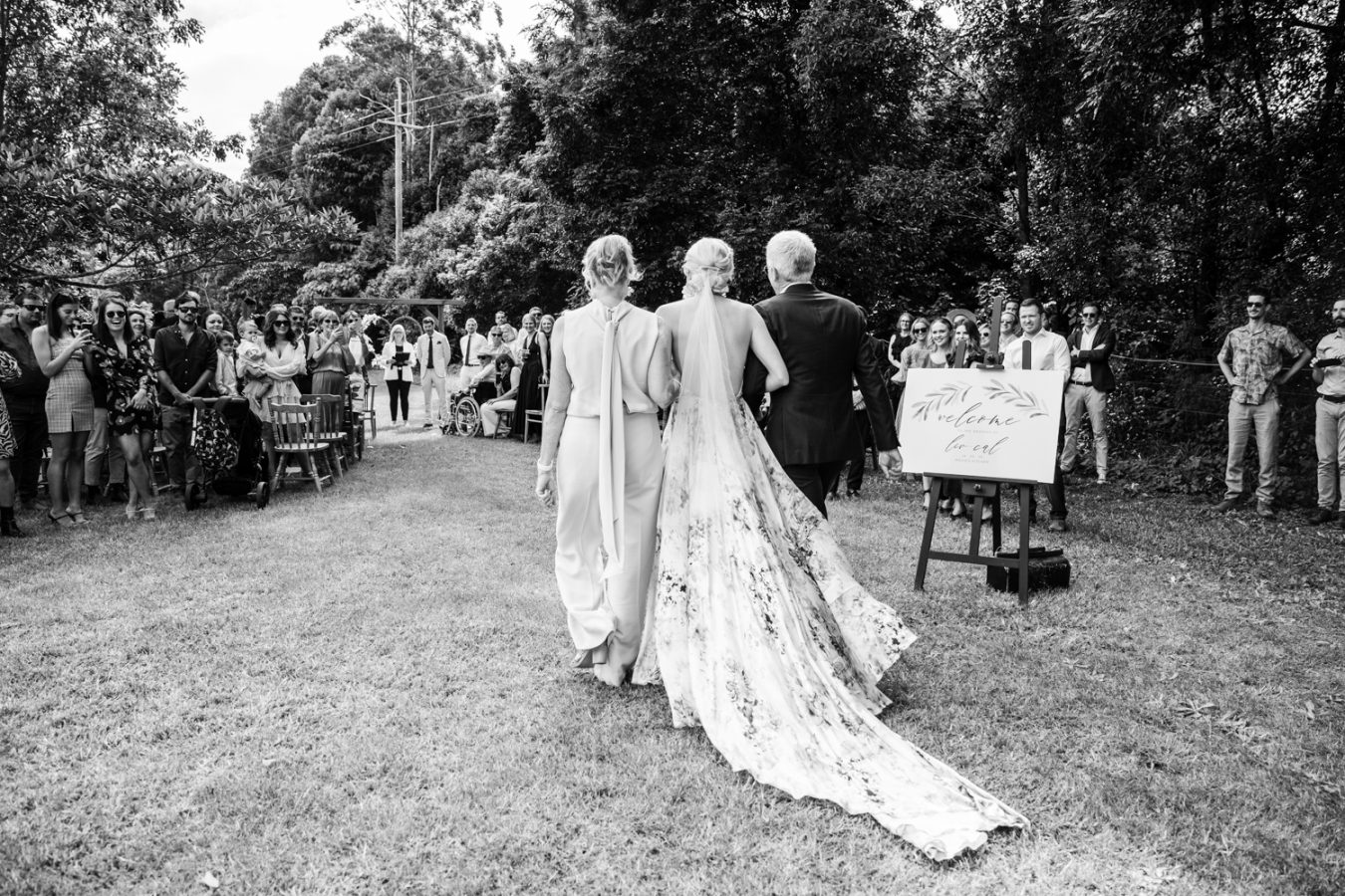 Loved ones ventured from near and far to gather in the gardens of Mavis’s Kitchen. The pair made their vows under the loving guidance of Liv’s aunty, in a perfectly framed setting at the foot of Woolumbin. In a special surprise, the mothers arranged a traditional smoking ceremony which honoured their formal union and guests were invited to join in the blessing.