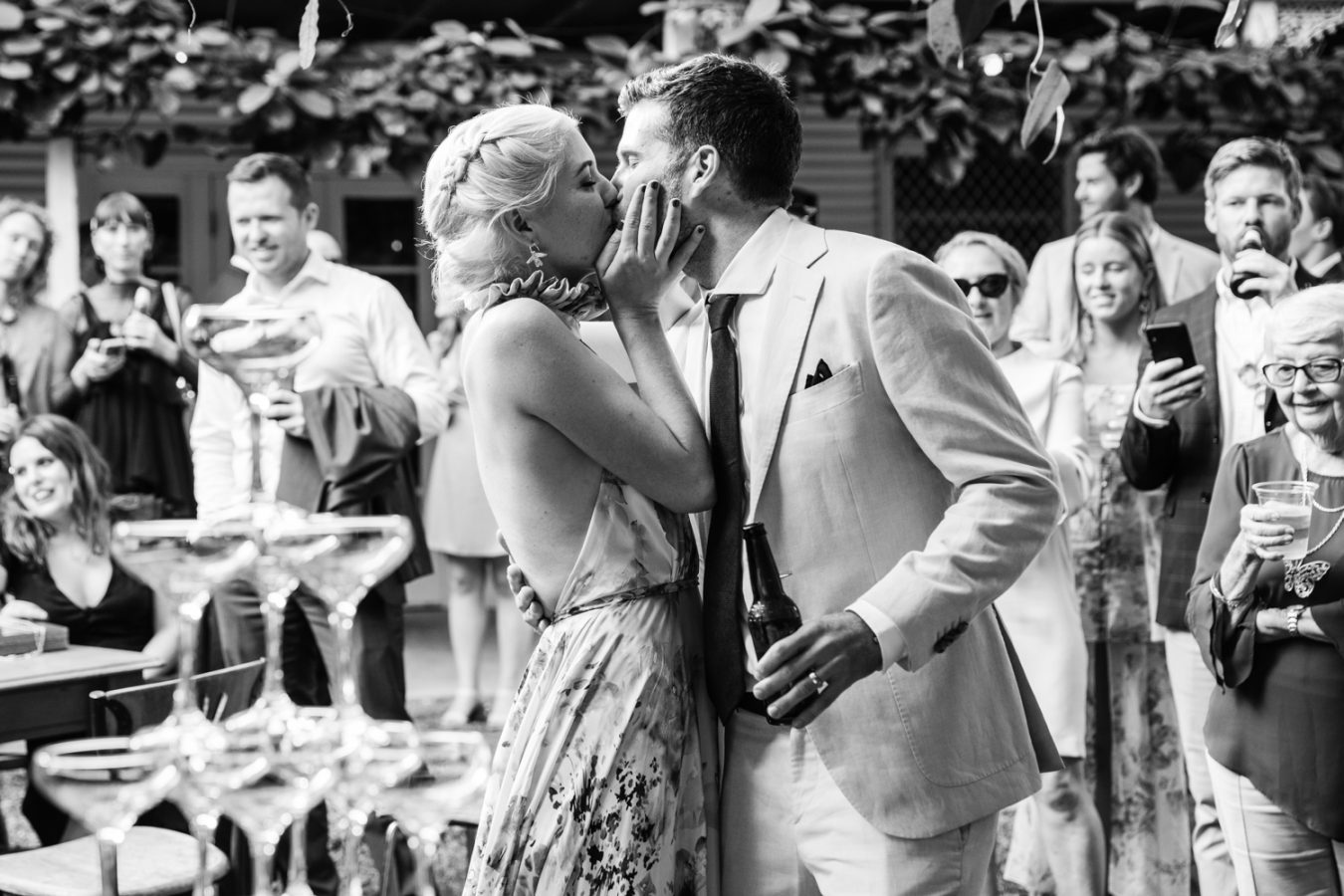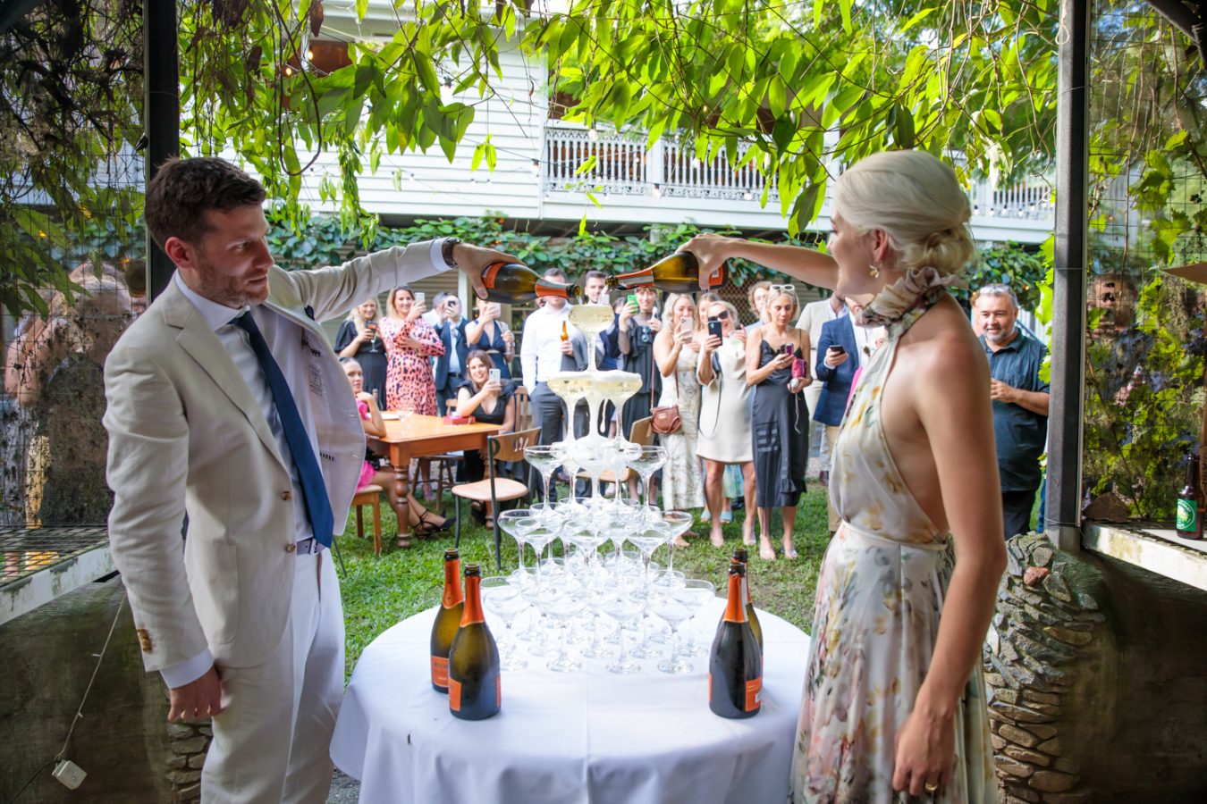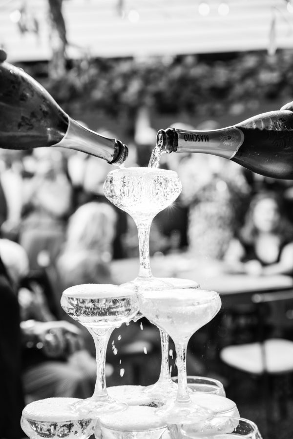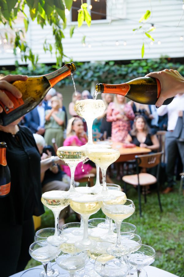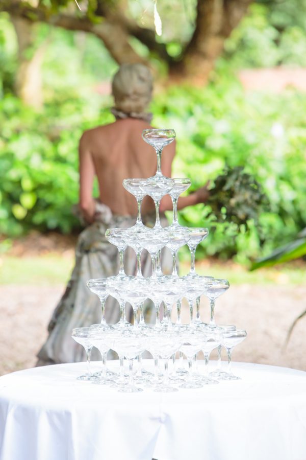 With no time for formalities, the couple mingled with their many guests who roamed around the beautiful herb gardens. The couple lead a toast to their wonderful friends and family with a champagne tower and the party kicked on well into the evening.