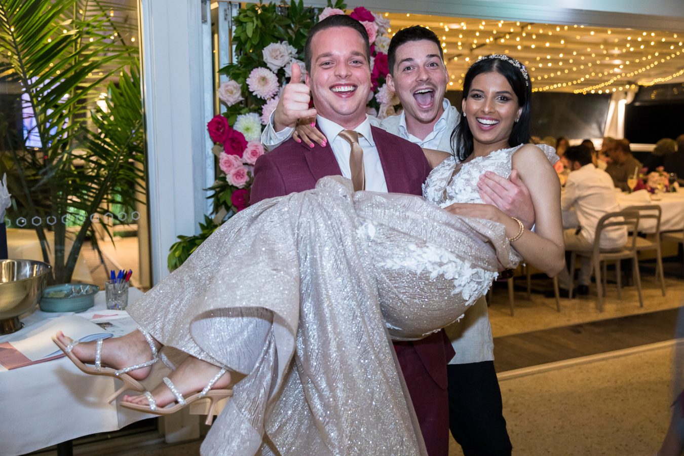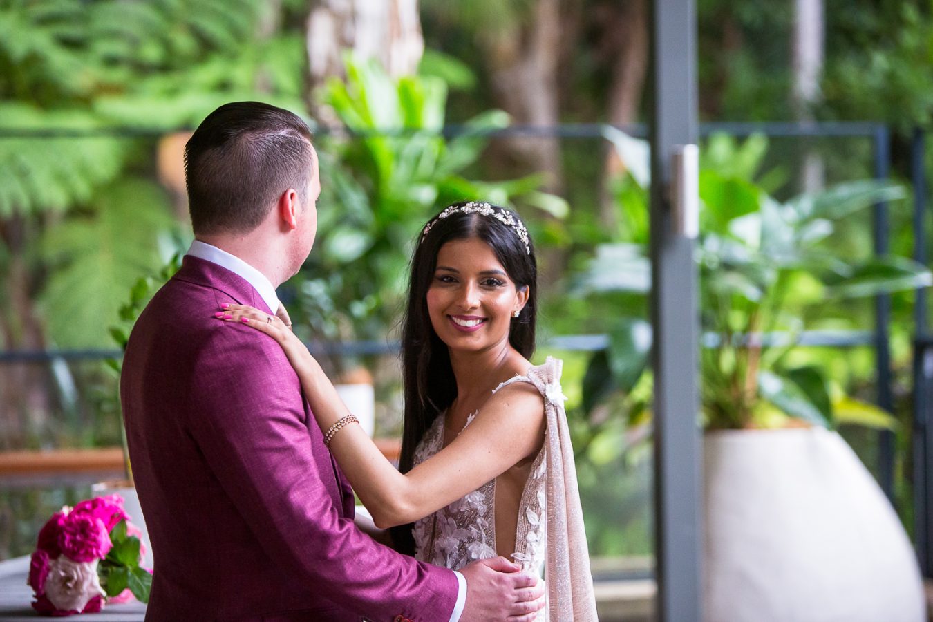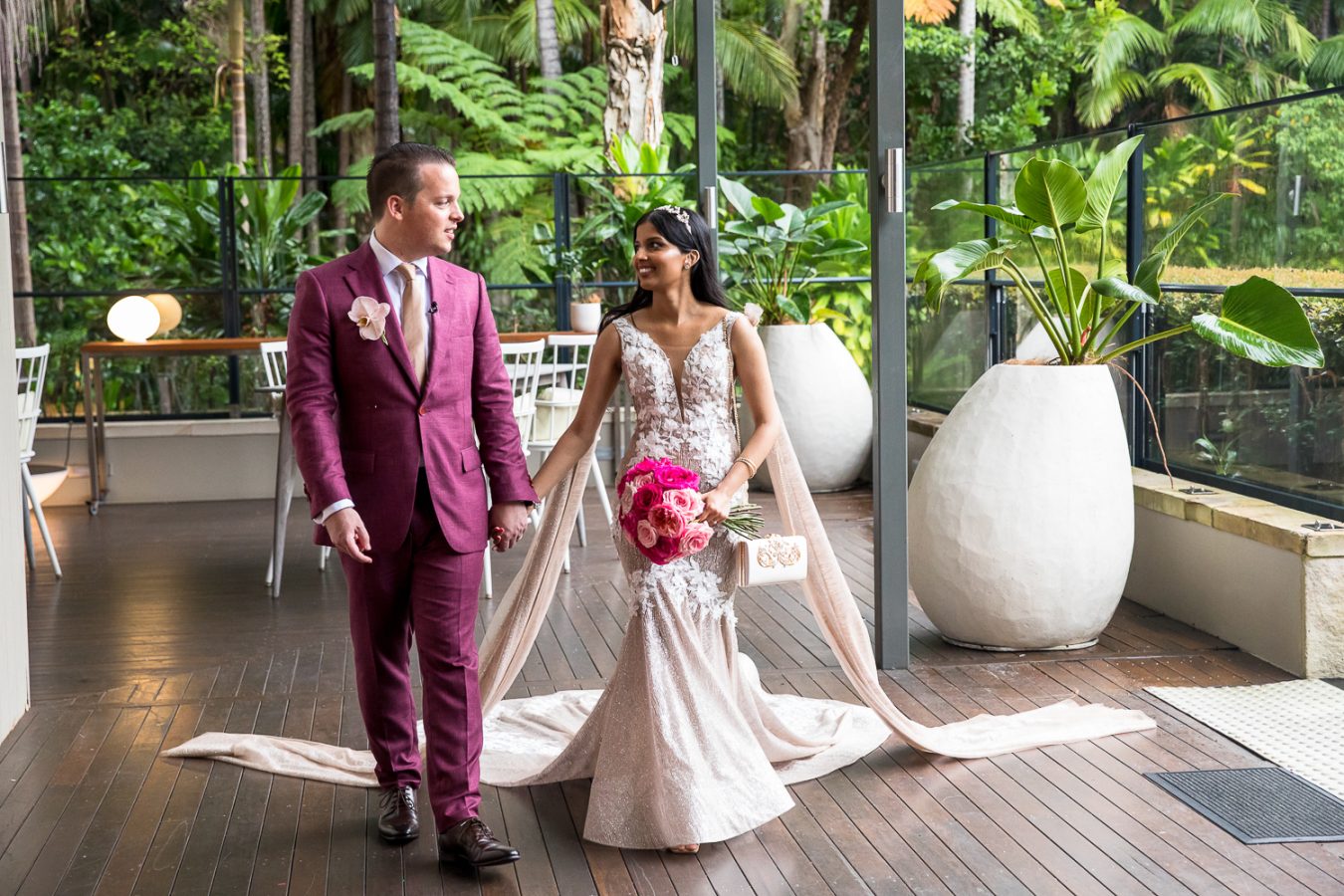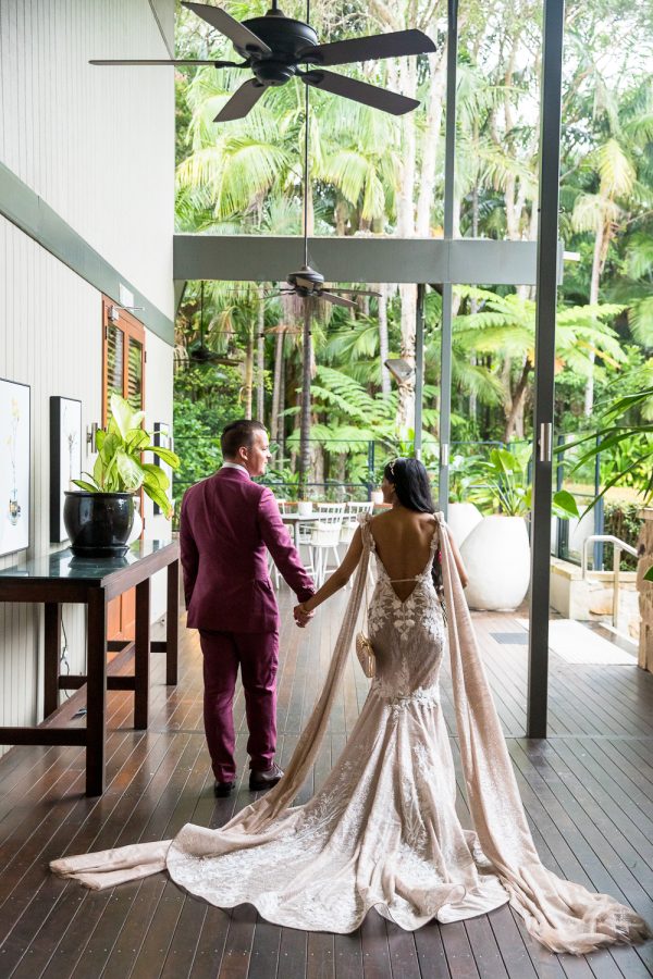 Whether it was luck or good planning, the pair had the perfect wet weather option for their romantic location shoot at the divine Crystalbrook Resort. A stunning backdrop for these sweethearts to connect and regroup before returning to the fun and games at the reception.